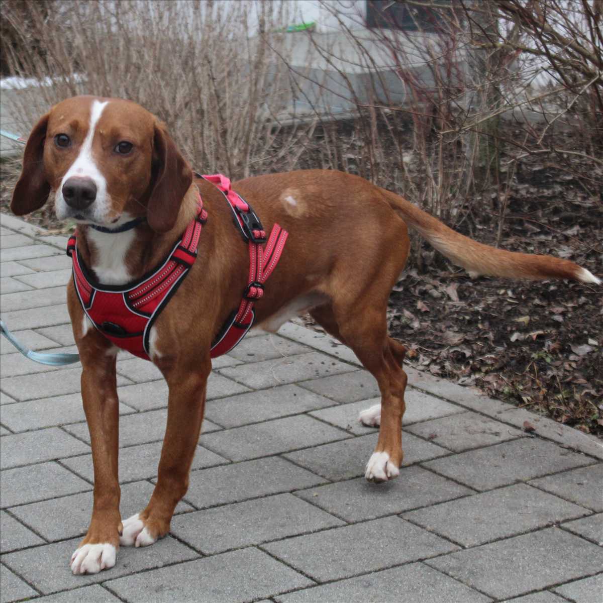 Cap ist ein unkastrierter Jagdhund Mix-Rüde, geboren ca. 2022. Er kam als Fundhund zu uns, weshalb über seine Vorgeschichte leider nichts bekannt ist. Aktuell wiegt er 20 kg bei einer Schulterhöhe von ca. 50 cm.