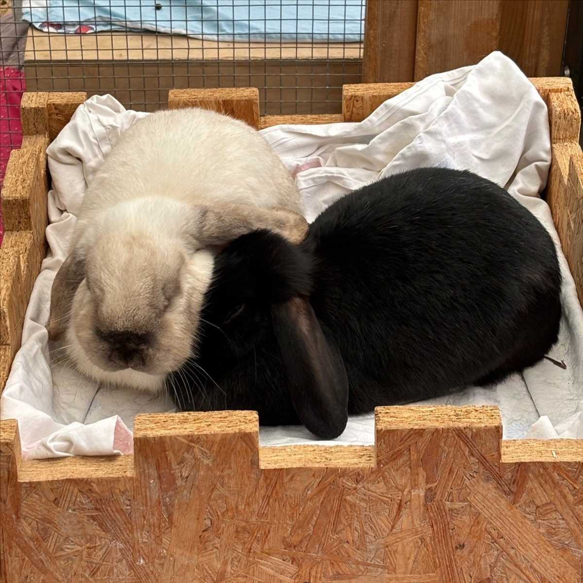 Kamtscha und Kurli sind zwei Widderkaninchen, die gemeinsam als Fundtiere zu uns ins Tierheim kamen. Beide wurden etwa im Februar 2024 geboren, Kurli ist bereits kastriert.